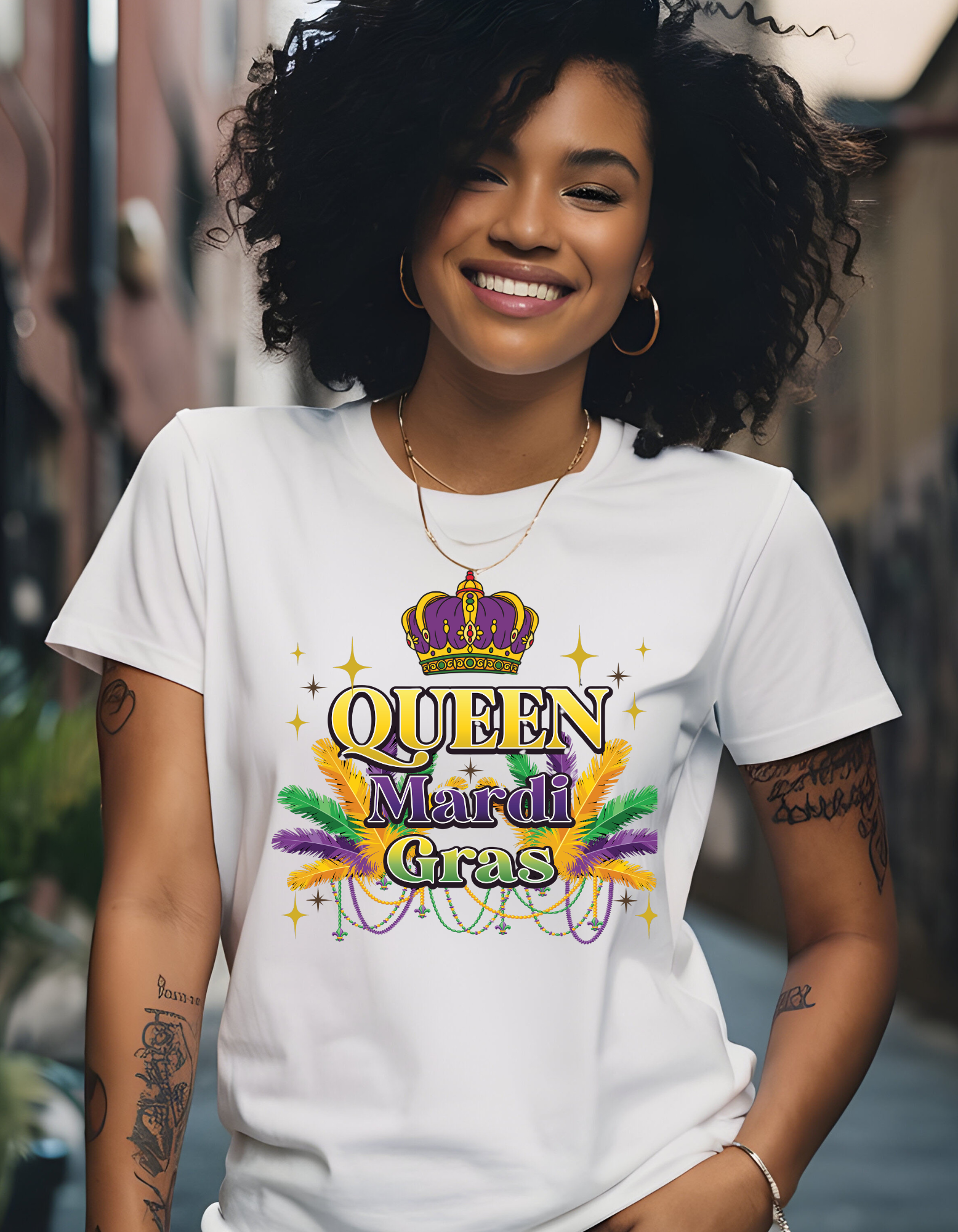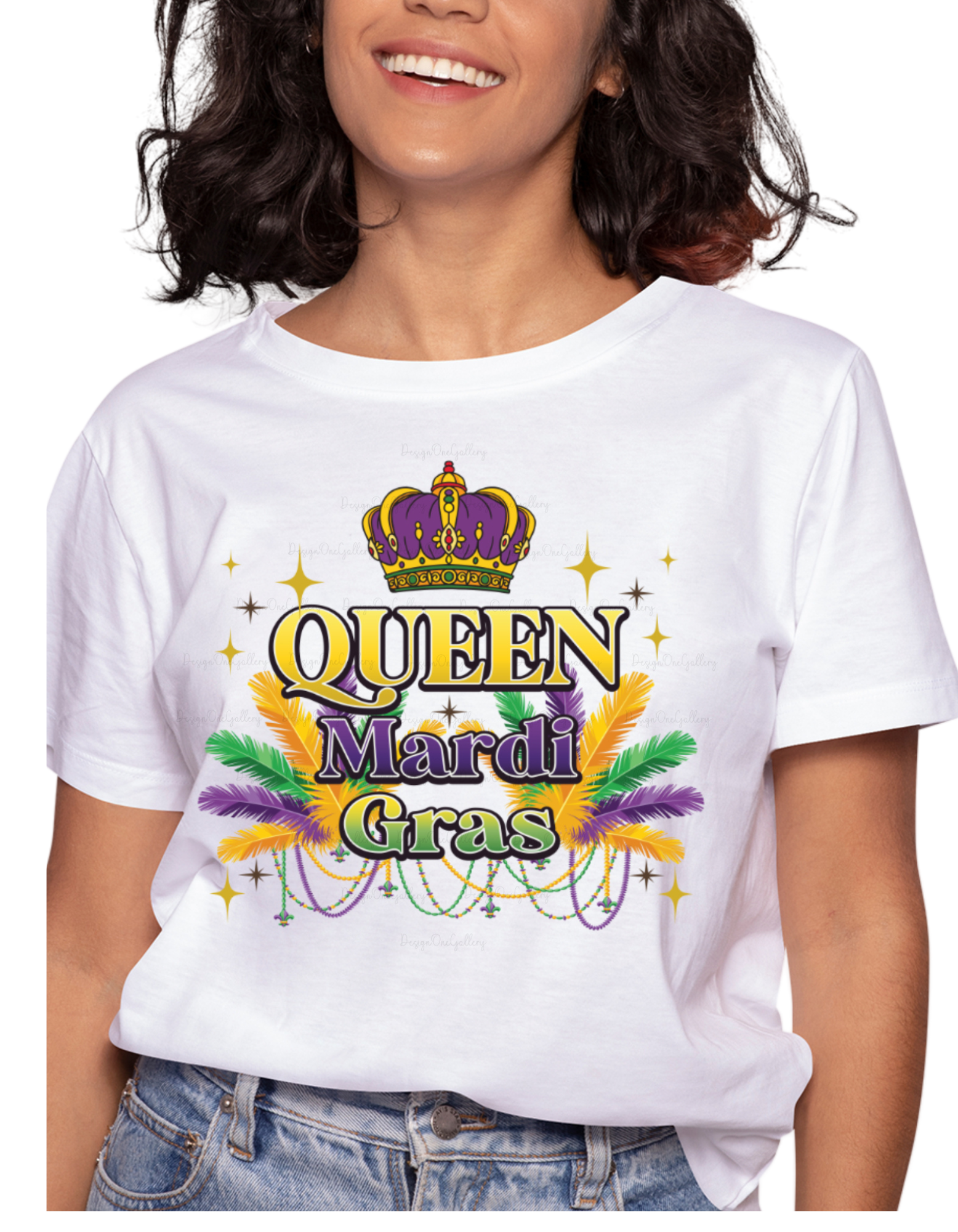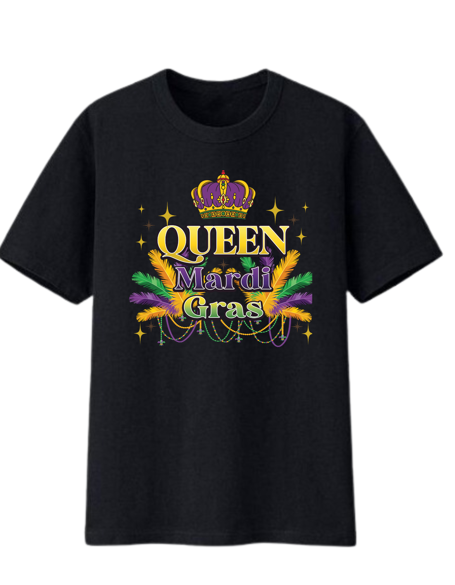 Celebrate the vibrant spirit of Mardi Gras with a Mardi Gras queen t-shirt, designed to embody the festive atmosphere of this lively celebration. Adorned with colorful beads, crowns, and whimsical designs, these shirts offer a perfect blend of style and comfort. Whether you're participating in parades, attending parties, or simply joining in the fun, a Mardi Gras queen t-shirt is a delightful expression of joy and tradition, making it a must-have for any carnival enthusiast. Gildan G5000.